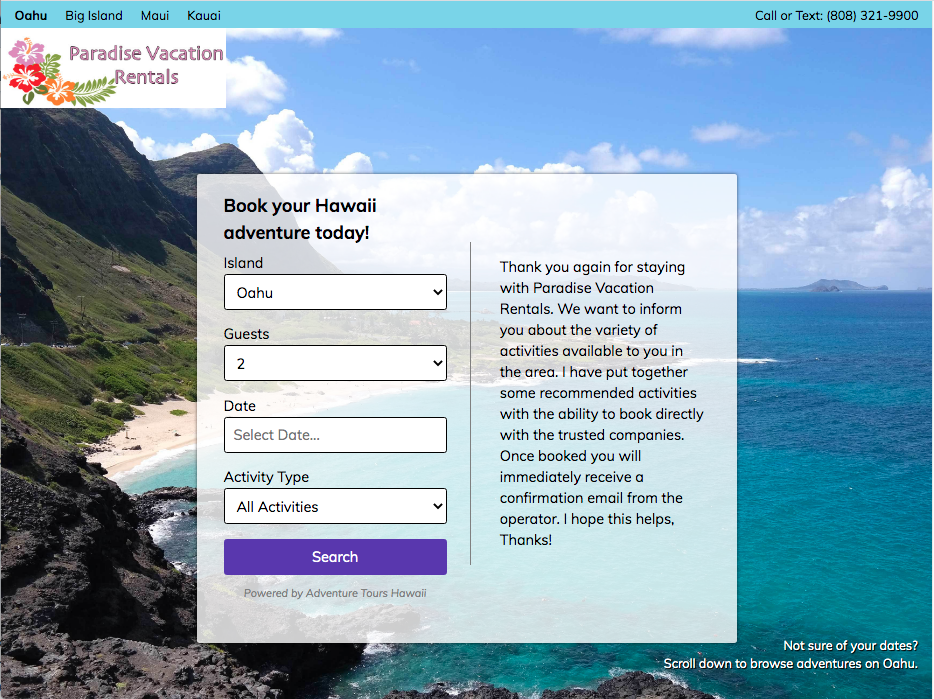 This allows you to provide an extra service for your upcoming guests by presenting them with all the fun adventures available to them during their stay while earning extra income from commissions on every booking.
