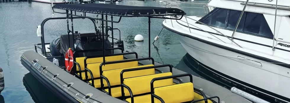 Tours depart from our slip at Honokohau Harbor, where you’ll check in with your captain and crew before boarding our custom RHIB vessel, Nature School II. With all forward-facing seats and a limited group size, you’ll have an unobstructed view as we set off down the coastline toward Kealakekua Bay, a journey filled with dramatic lava rock cliffs, sea caves, and vibrant coastline scenery.