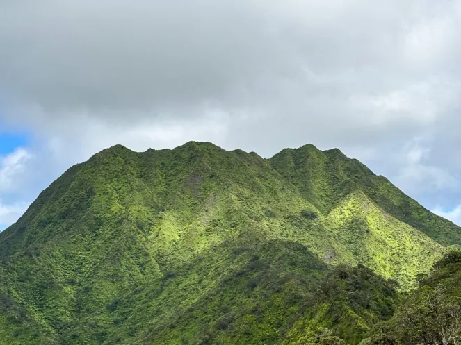 Tucked away on Kapalama ridge in Alewa Heights above Honolulu, the Kapalama Trail offers a challenging ascent to Puu Lanihuli, one of the 2700ft+ peaks in the southern Koʻolau Range. This strenuous 7.2-mile round-trip hike climbs over 2,300 feet in elevation, taking adventurers through ironwood and cook pine forests, native ʻōhiʻa lehua groves, and narrow ridgelines with sweeping views of Oʻahu’s urban center, Nu'uanu Valley, the Ko'olau mountains interior, before finally summit views of Windward Oahu.