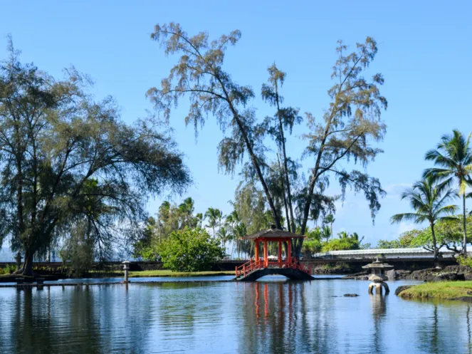 Take a slow, scenic stroll through Queen Liliʻuokalani Gardens, Hilo’s crown jewel of history and tranquility. This one-hour loop leads you past arched bridges, koi-filled ponds, and 17 traditional stone lanterns, with the royal blue of Hilo Bay as your backdrop. Along the way, you’ll discover ties to Japan’s Gannenmono immigrants, cross iconic bridges rebuilt after tsunamis, and pause under banyan and palm shade where nēnē graze. Start with a double scoop of taro or coconut ice cream from Aliʻi Ice, and finish with salt air on your skin and a deeper connection to this peaceful corner of Hawaiʻi.