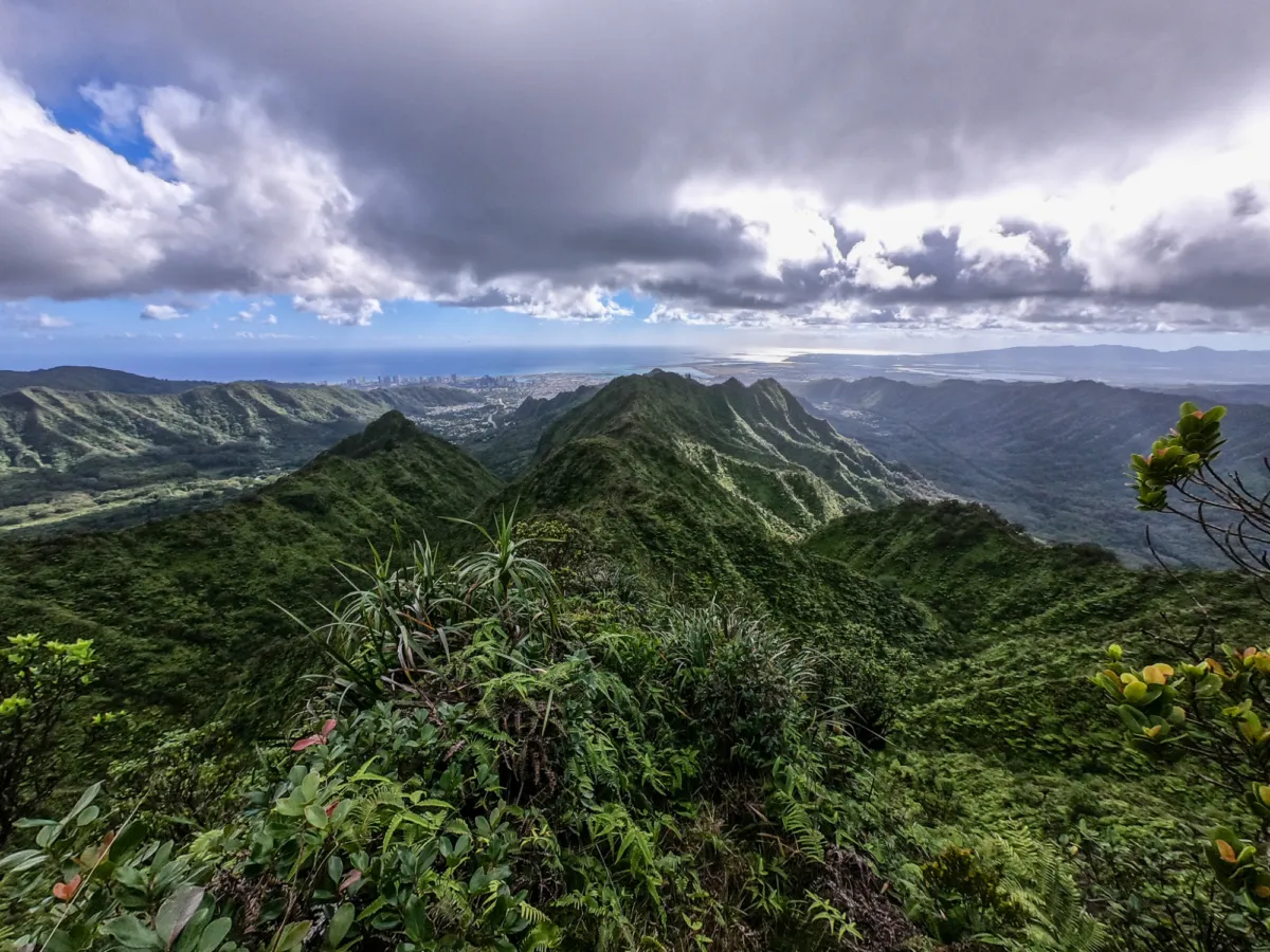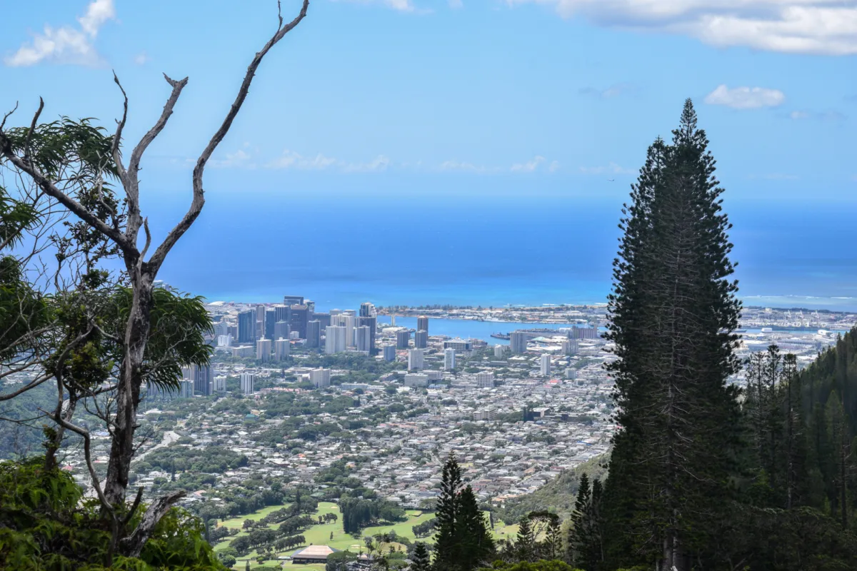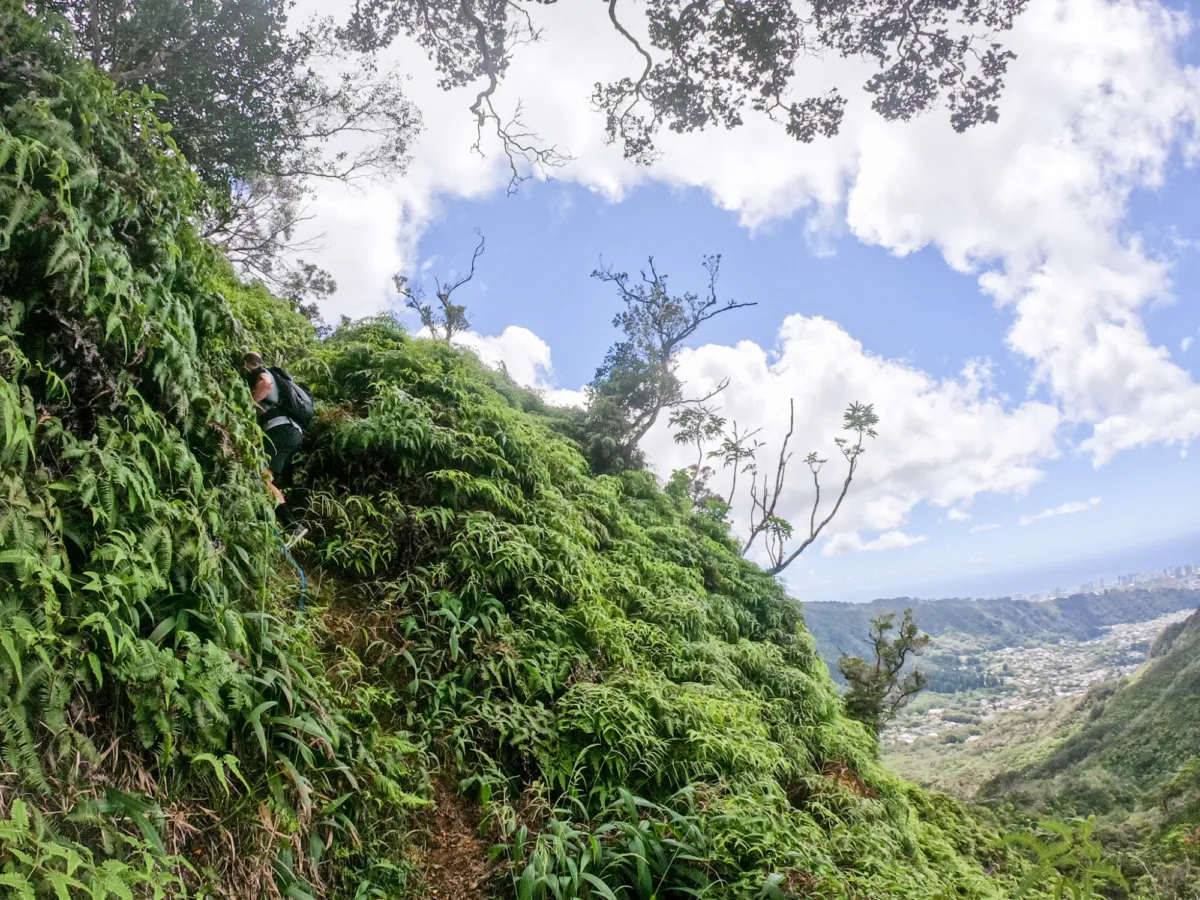 Looking back, Honolulu Harbor peeked through the greenery, a stark contrast to the wild, untamed beauty of the Koʻolau.