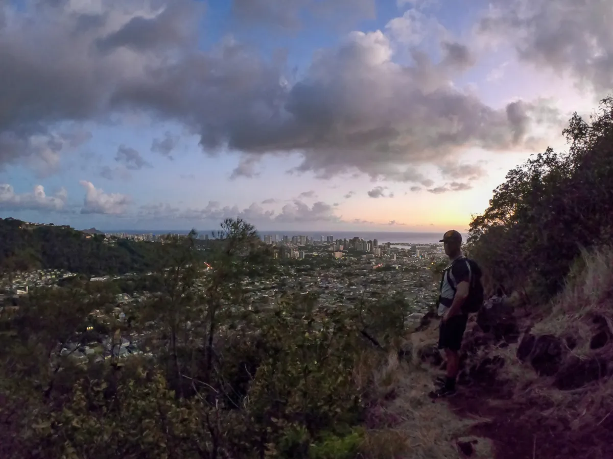 We returned back to the flat area where we left our bags, relaxed a bit longer, and eventually came to the conclusion it was time to head down. The descent was much faster, though we couldn’t resist pausing for a golden sunset on the western-facing ridge. The golden hues cast over Honolulu felt like a fitting reward for our efforts. By the time we reached the trailhead, dusk was settling in—a perfect end to a demanding yet unforgettable hike.
