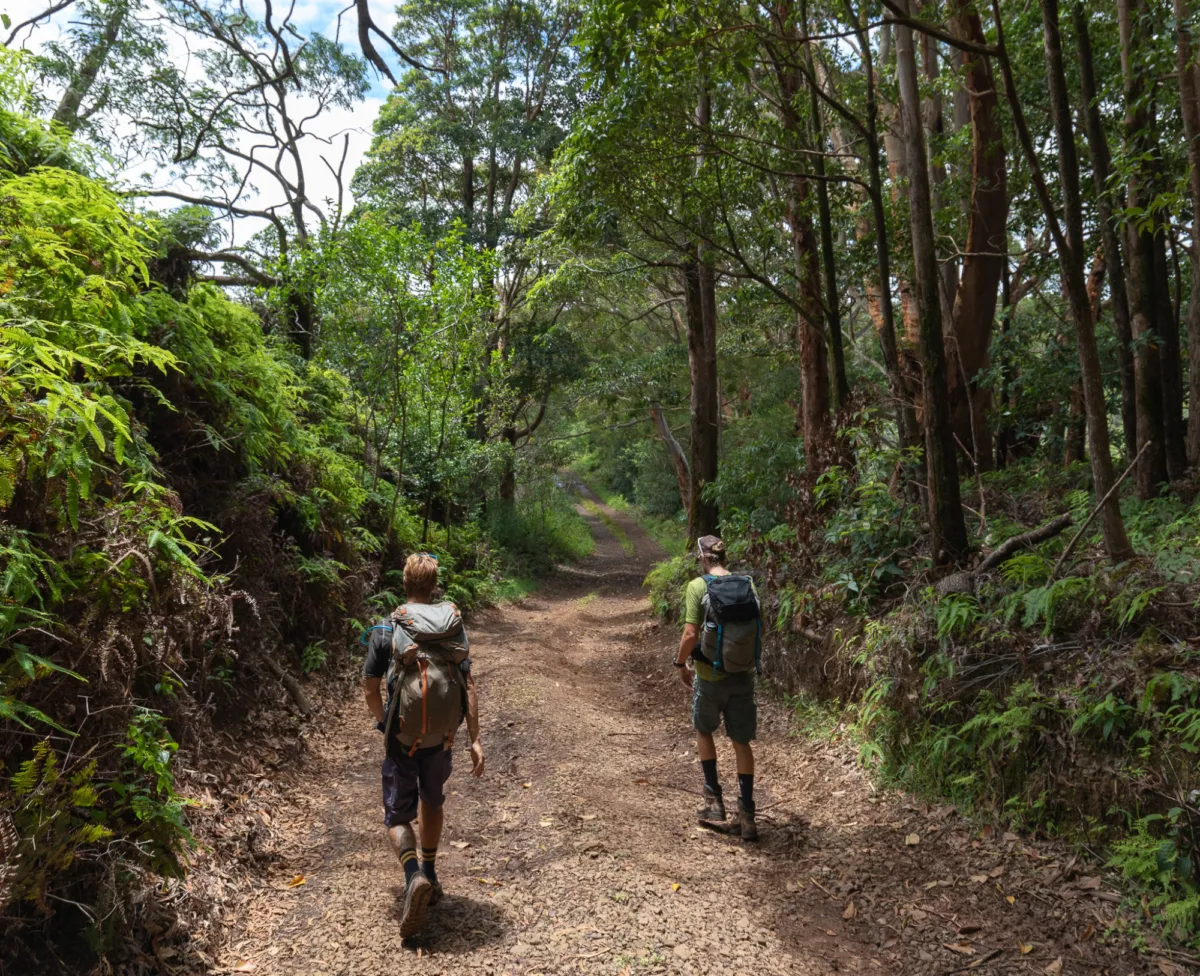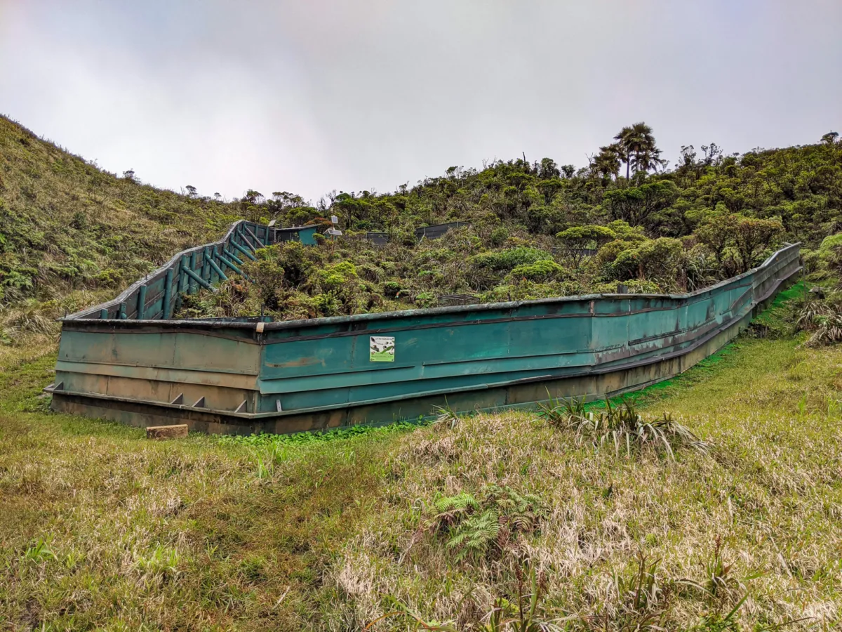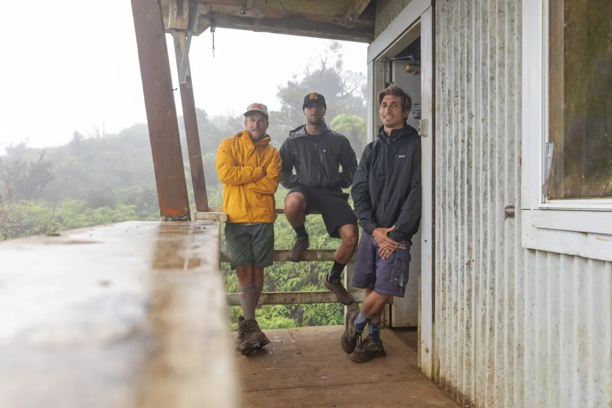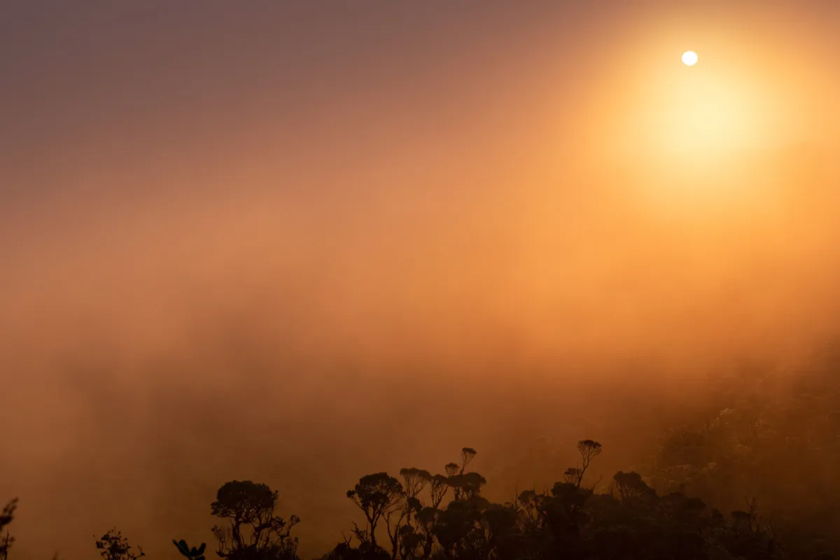 After 5–10 minutes, the phenomenon ended as abruptly as it began. The fiery glow faded, leaving us in the cool, damp darkness of twilight. Still trying to wrap our heads around what we had just experienced, we headed into the cabin for some much-needed rest, the memory of the surreal moment etched into our minds. The next morning, we woke to the gentle patter of light rain on the metal roof and found ourselves once again socked in by a cloud. After a quick breakfast, we packed up our gear, tidied the cabin, and even packed out some rubbish that wasn’t ours, always leaving a place better than we found it. With everything ready, we began our descent down the Poamoho Trail.