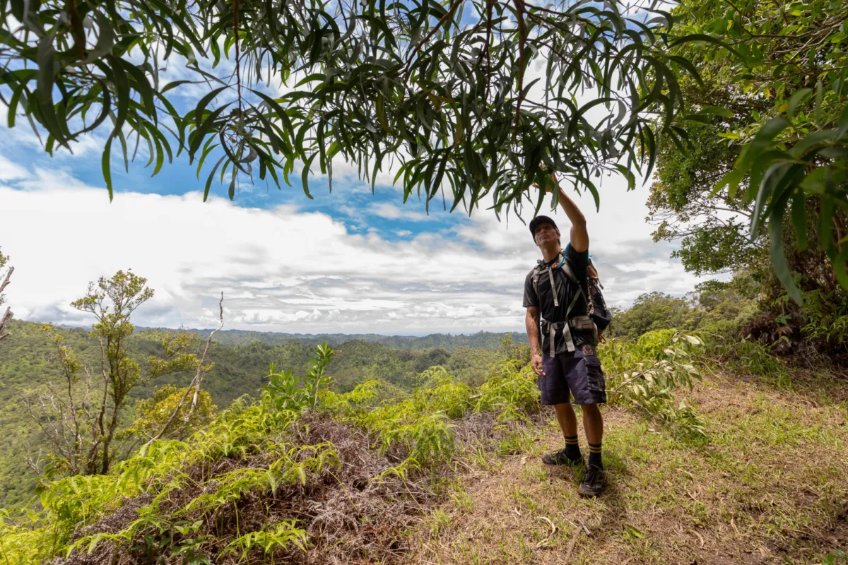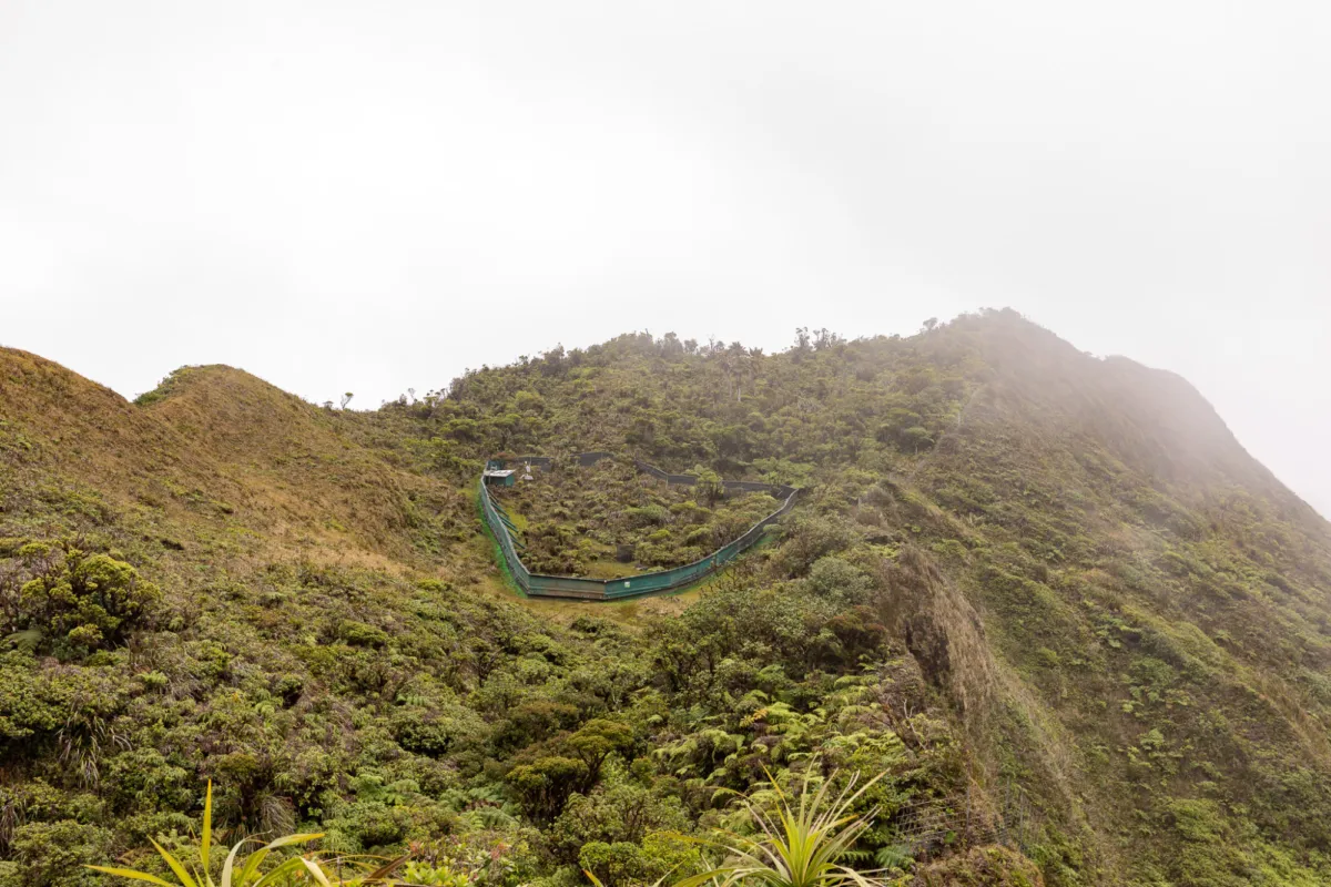 Walking the Poamoho boardwalk, perched on the edge of the Koʻolau Mountains, with breathtaking views of Puu Ohulehule rising in the distance.