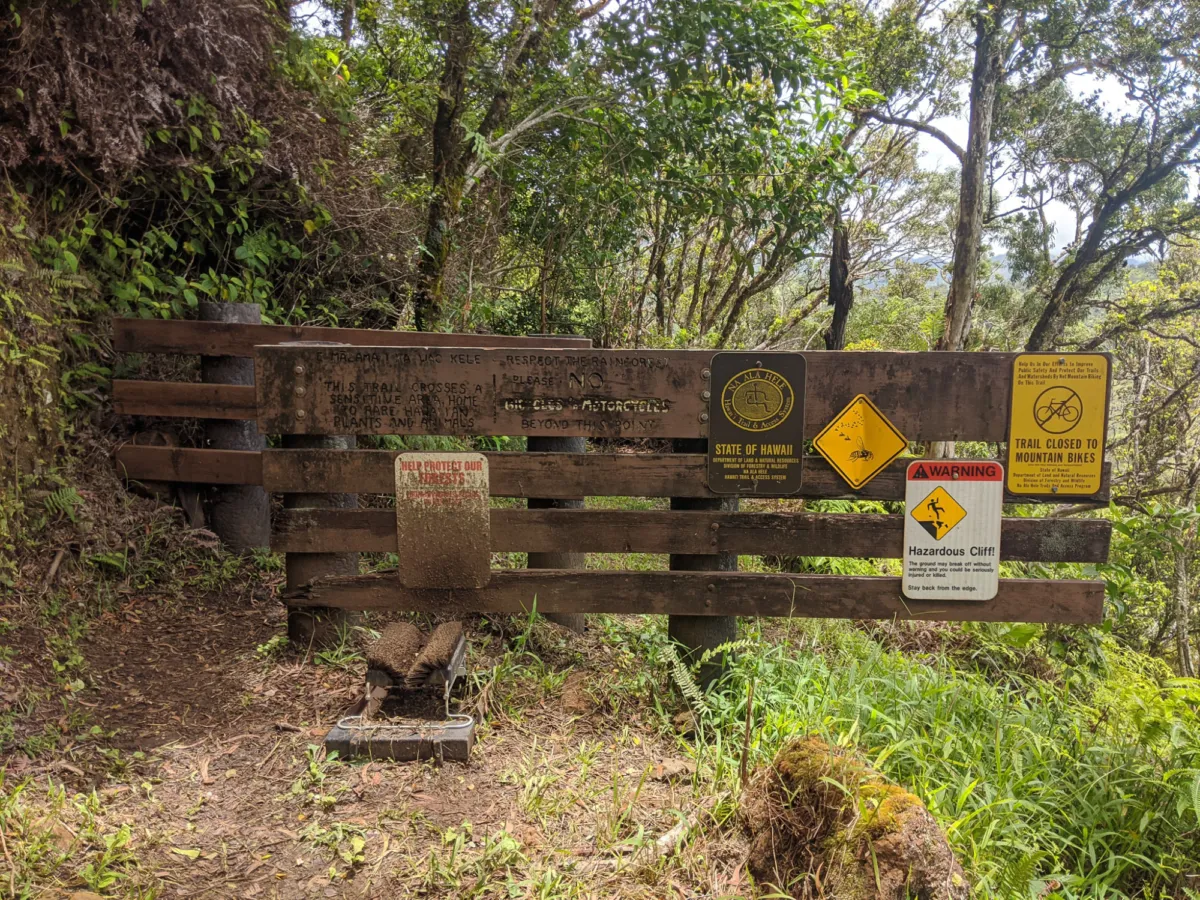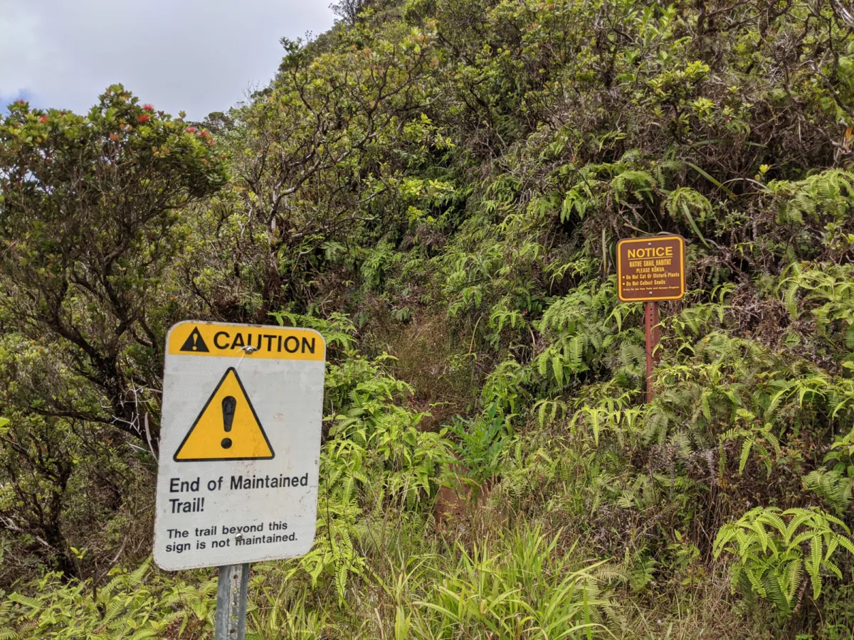 All well-maintained sections of trail must come to an end, and we soon faced a sign marking the start of an unmaintained section. A second sign informed us that we were entering a native snail habitat. Personally, I can't remember seeing a sign like this on any other trail, and it immediately sparked my interest. If anyone reading this knows of other snail habitats in Hawaii, please email me at shane@adventuretourshi.com. The idea of walking through a protected habitat for the endangered Kāhuli, or Hawaiian tree snails, made the hike feel even more meaningful by connecting us to the native ecosystems.