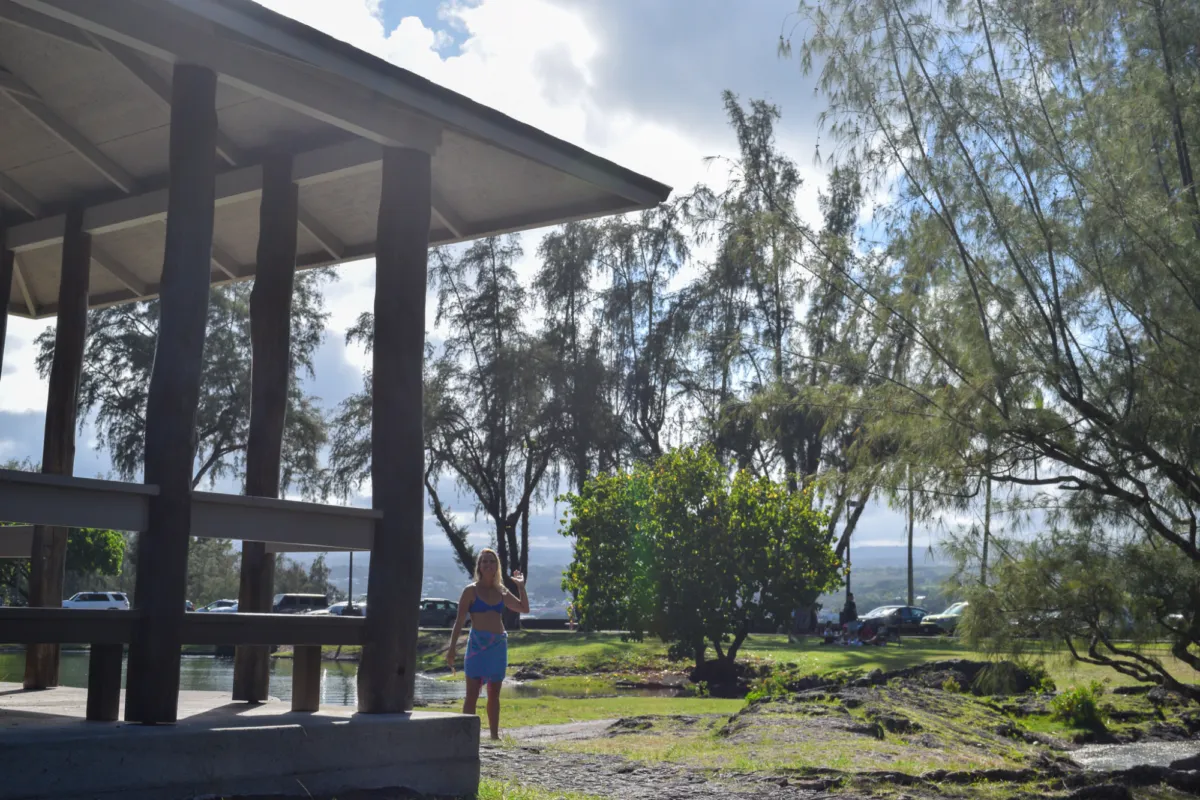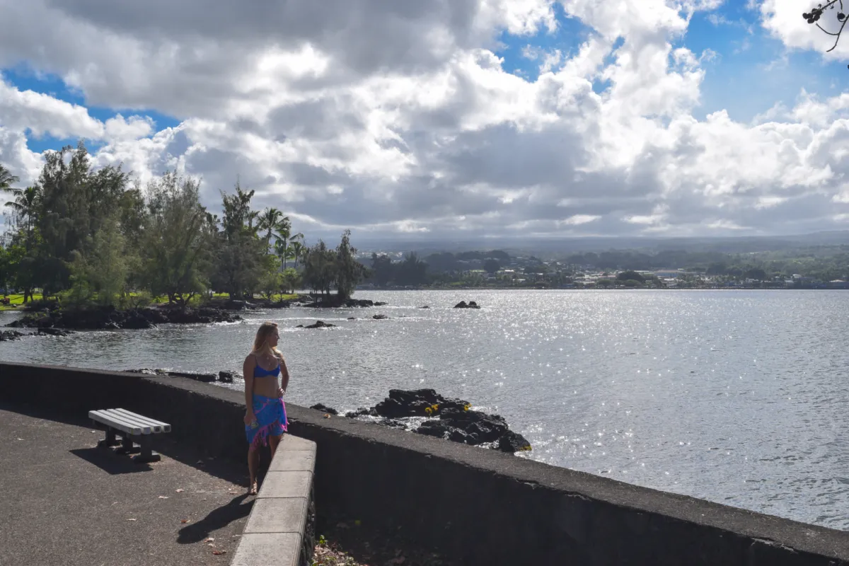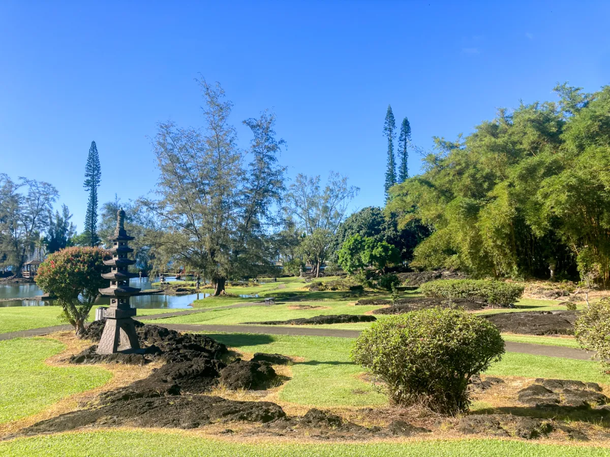 Every time I’m in Hilo, whether I’m solo, wrangling the family, or catching up with friends, I follow the same ritual. First, I find a spot along Banyan Drive, under the sweeping shade of century-old trees, just steps from Hilo Bay’s inky-blue water. From there, it’s a short walk to Aliʻi Ice for a double scoop of taro or coconut in a crisp waffle cone (trust me, those are the winners). Cone in hand, I head for Queen Liliʻuokalani Gardens, a Japanese-style oasis where arched bridges, koi-dotted ponds, and Japanese lanterns feel a world away from nearby busy downtown Hilo.