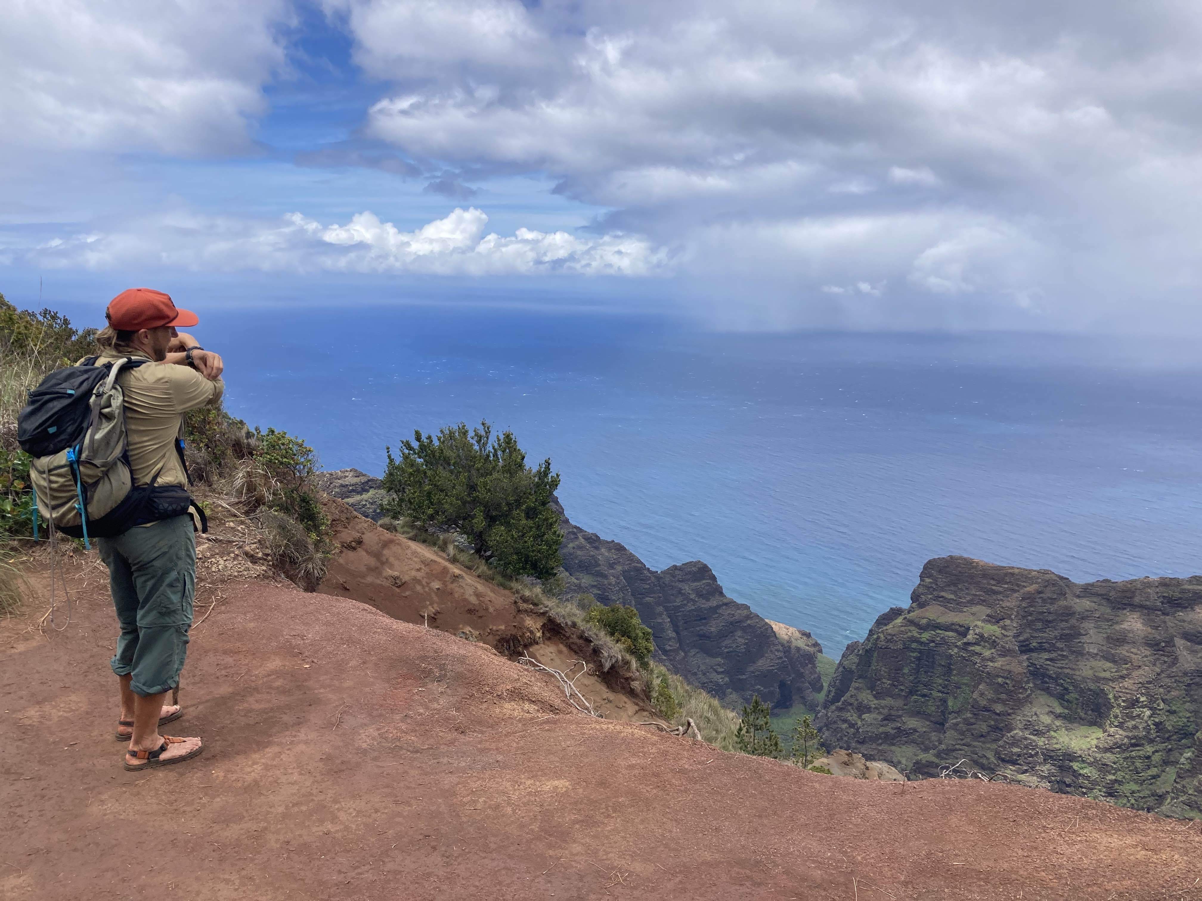 Admiring Na Pali's coastal magic from Koke'e's peaks, Over 1,800 Feet above the Pacific.