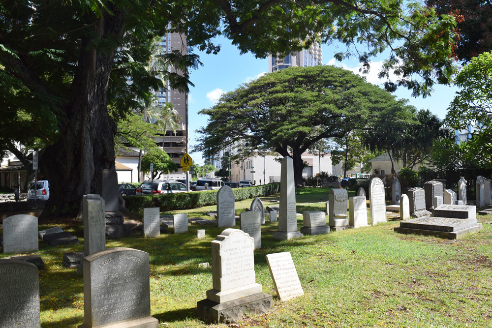 When visiting the Kawaiaha’o Church you will also see the sixth monarch of Hawaii, William Charles Lunalilo’s, mausoleum in the front of the church. In the side yard is a commemoration of the sacred spring, Ha’o, where the church gets it’s name (Ka Wai a Ha’o - The Water of Ha’o) And in the rear churchyard you will find the Mission Cemetery that lies several of the church’s original missionaries and their descendants, including Bingham, Dole, Castle, Cooke.