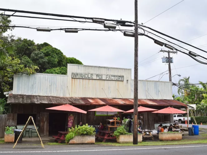 Waiahole Poi Factory is a family owned Hawaiian food restaurant that features the most authentic Hawaiian cuisine on Oahu. Located in Waiahole, on the Windward (East) side of Oahu, the historic wooden building that houses the delicious smells and tastes of Hawaii can easily be passed by if you’re not paying attention. But to overlook it would be to miss out on a true Hawaii experience.